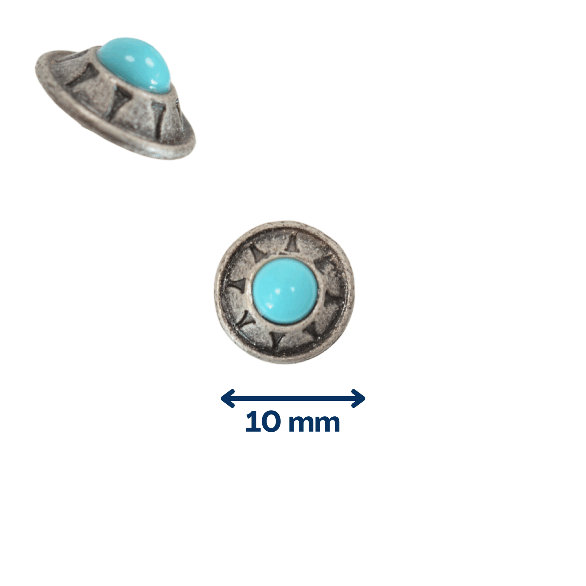 Ces conchos se fixent grâce à des rivets (de 1 à 3) que nous vous conseillons d’écraser à l’aide d’un marteau de maroquinier ou d’un marteau rivoir après avoir préalablement protéger votre concho par une chute de cuir.