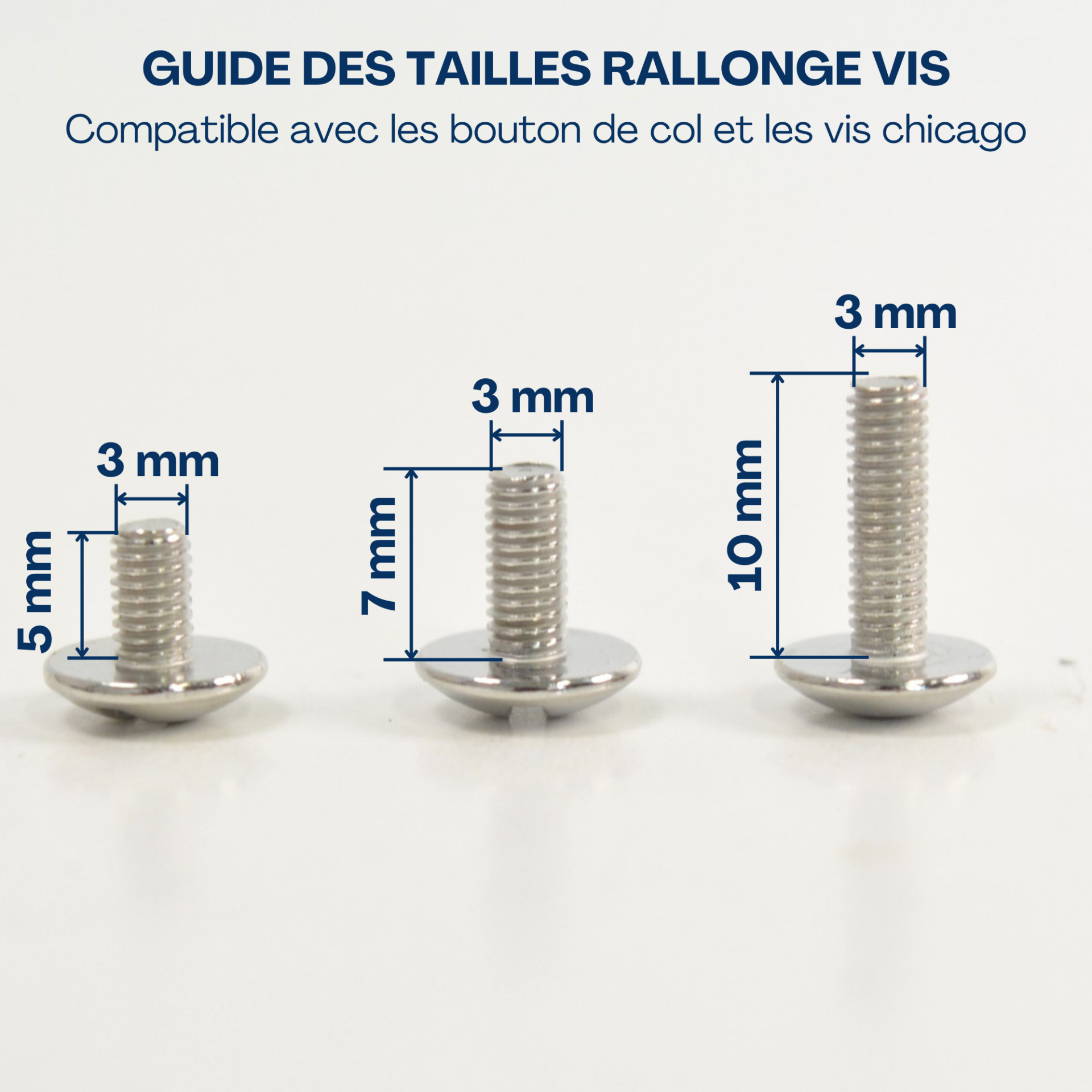 Vis à rallonge compatible avec les vis Chicago et bouton de col (Taille 1, 2 et 3)