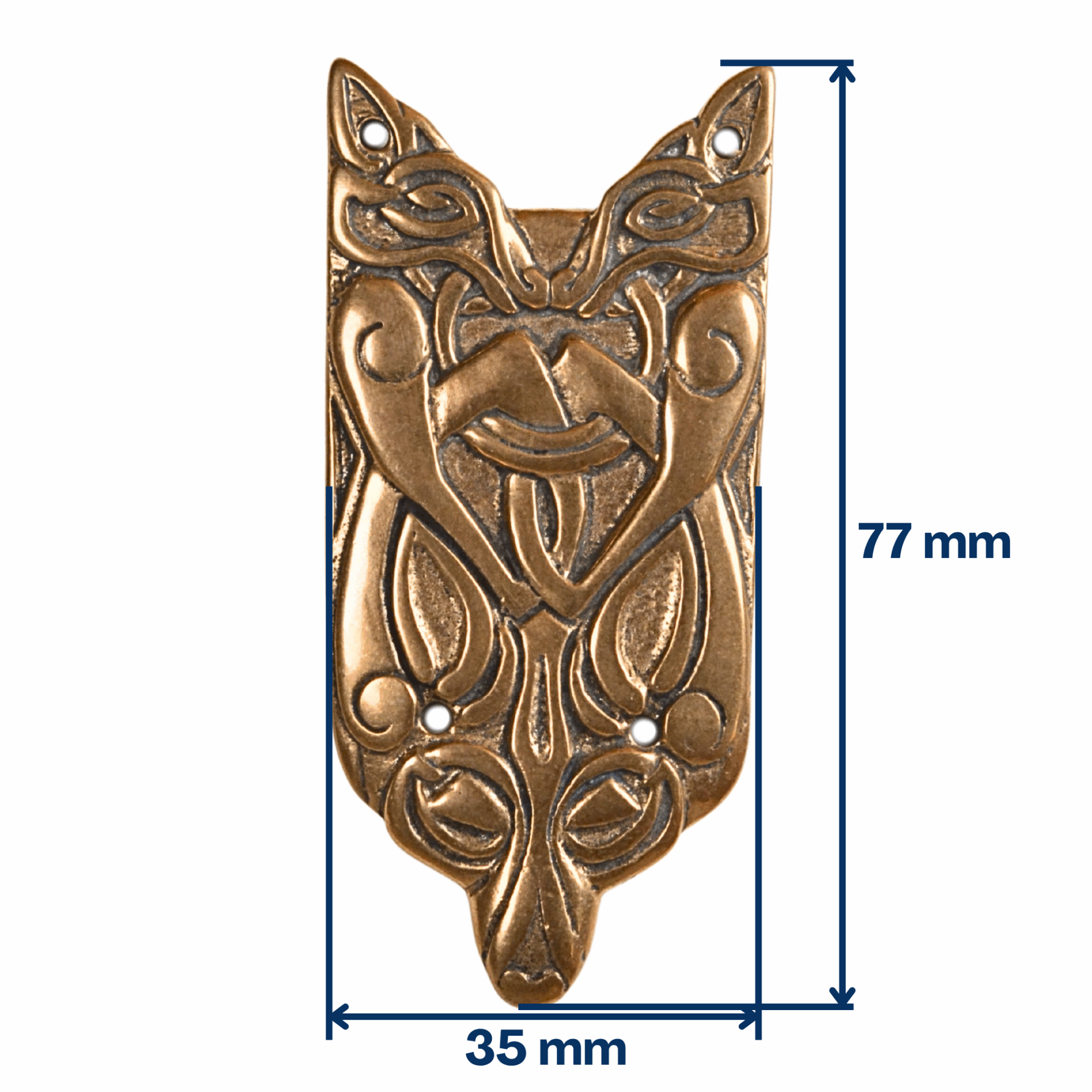 - Bout de ceinture : Longueur : 77 mm / Largeur : 35 mm / Distance entre les trous pour les clous : 30 mm / Largeur les trous pour les clous : 2 mm