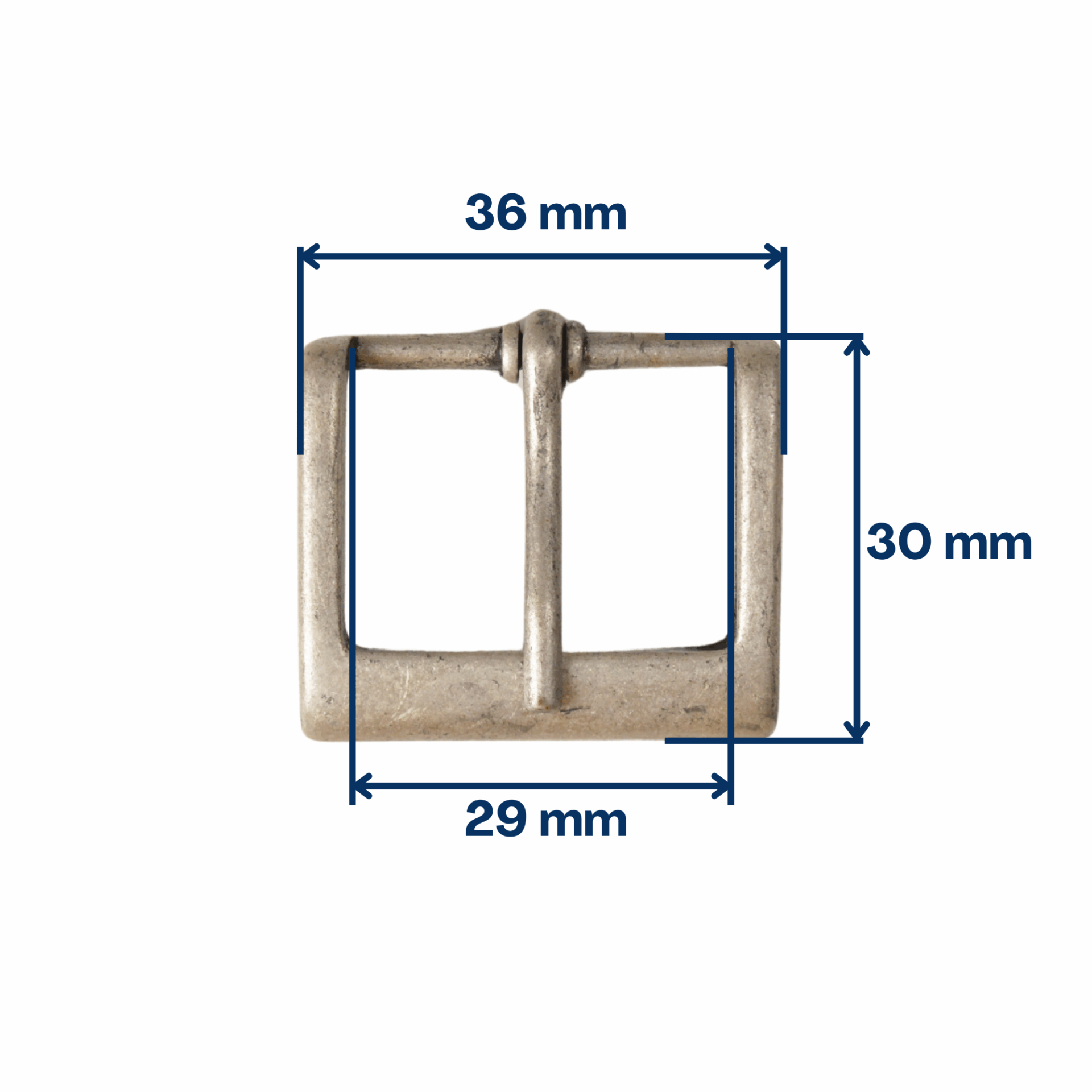 Boucle germanique finition vieil argent pour sangle de 29 mm.