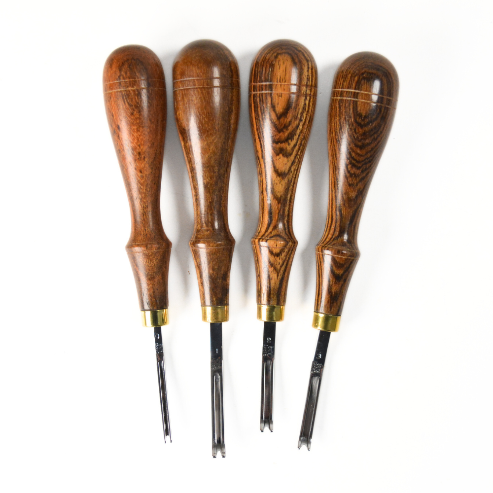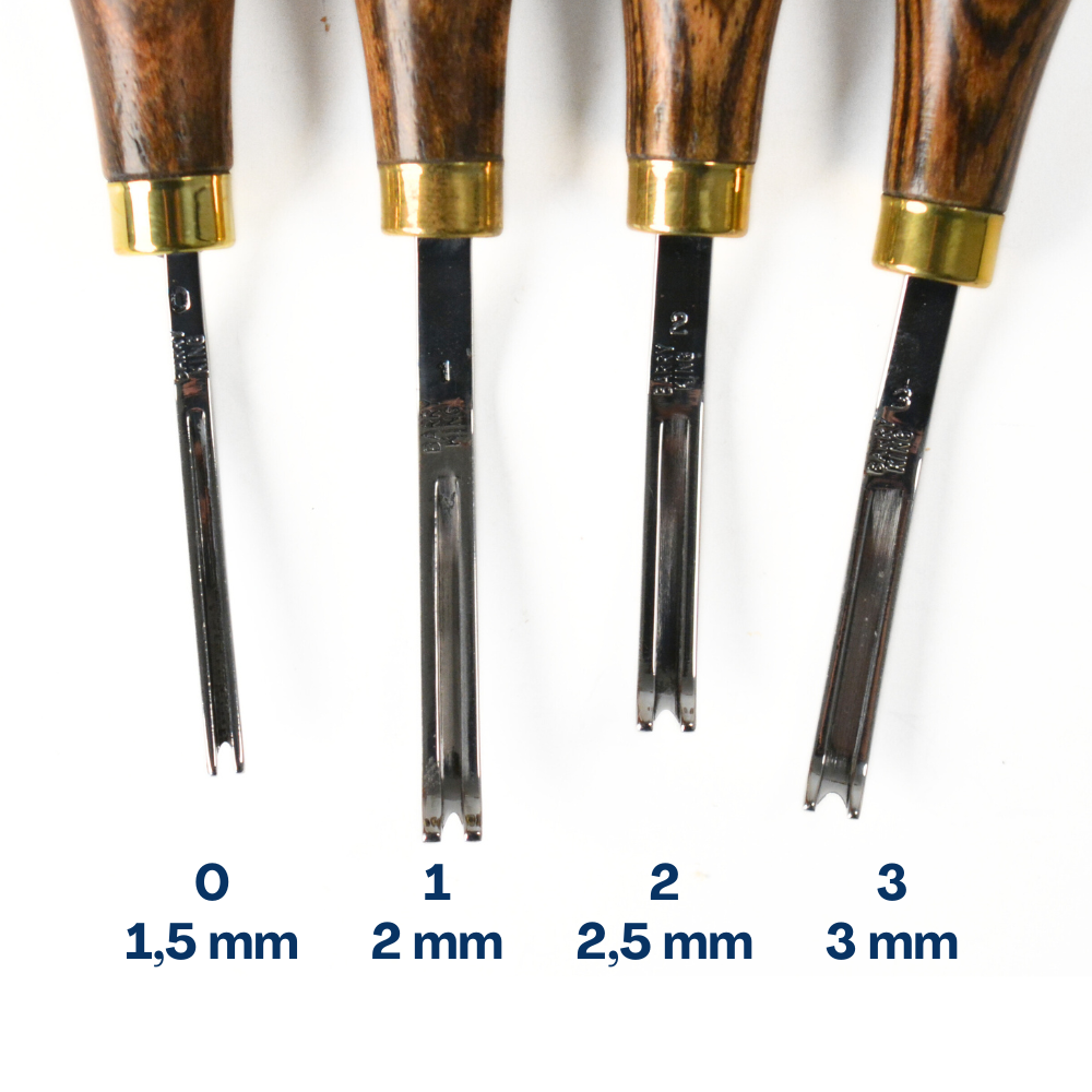 Le modèle “Grooved Edger” est courbe à l’intérieur de la lame assurant ainsi une coupe en arrondi au niveau de l’angle de votre pièce de cuir.