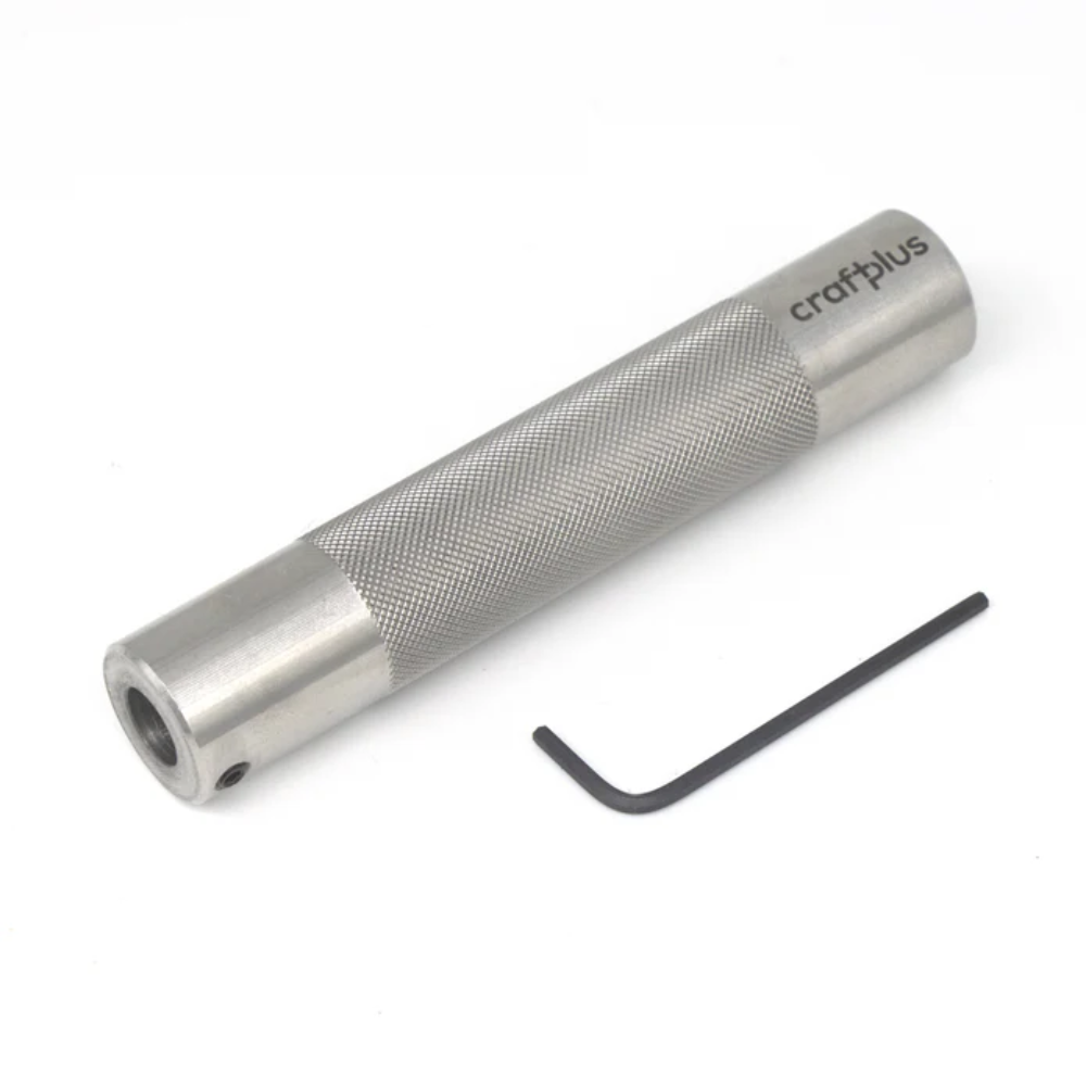 Manche en acier inoxydable, conçu pour équiper la plaque de découpe Craftplus®. Il transforme la plaque en un outil de frappe manuel et autonome, assurant des découpes sans l’usage d’une presse.