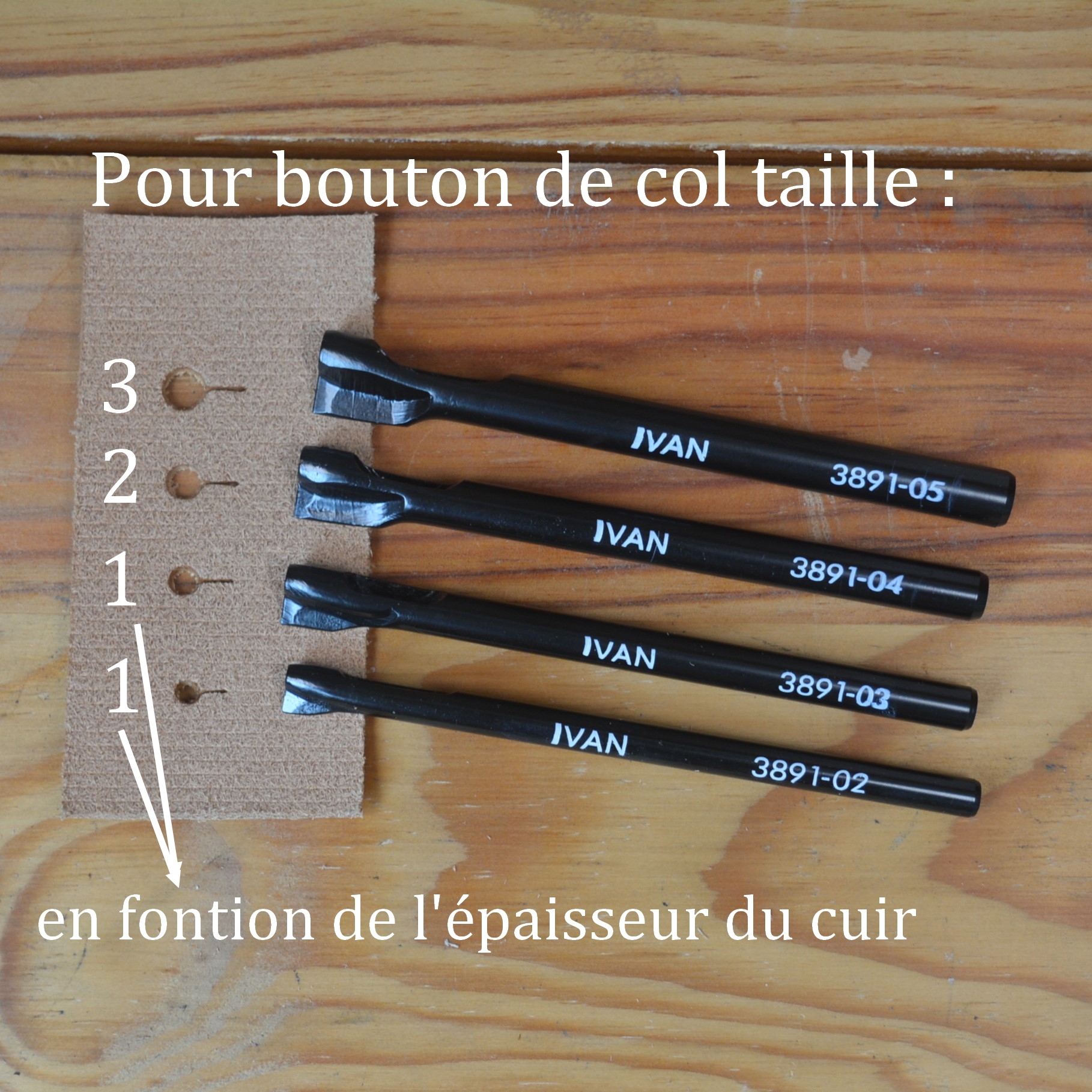 Pensez à faire un test, car le trou peut sembler trop grand ou trop petit en fonction de l’épaisseur du cuir et de sa rigidité.